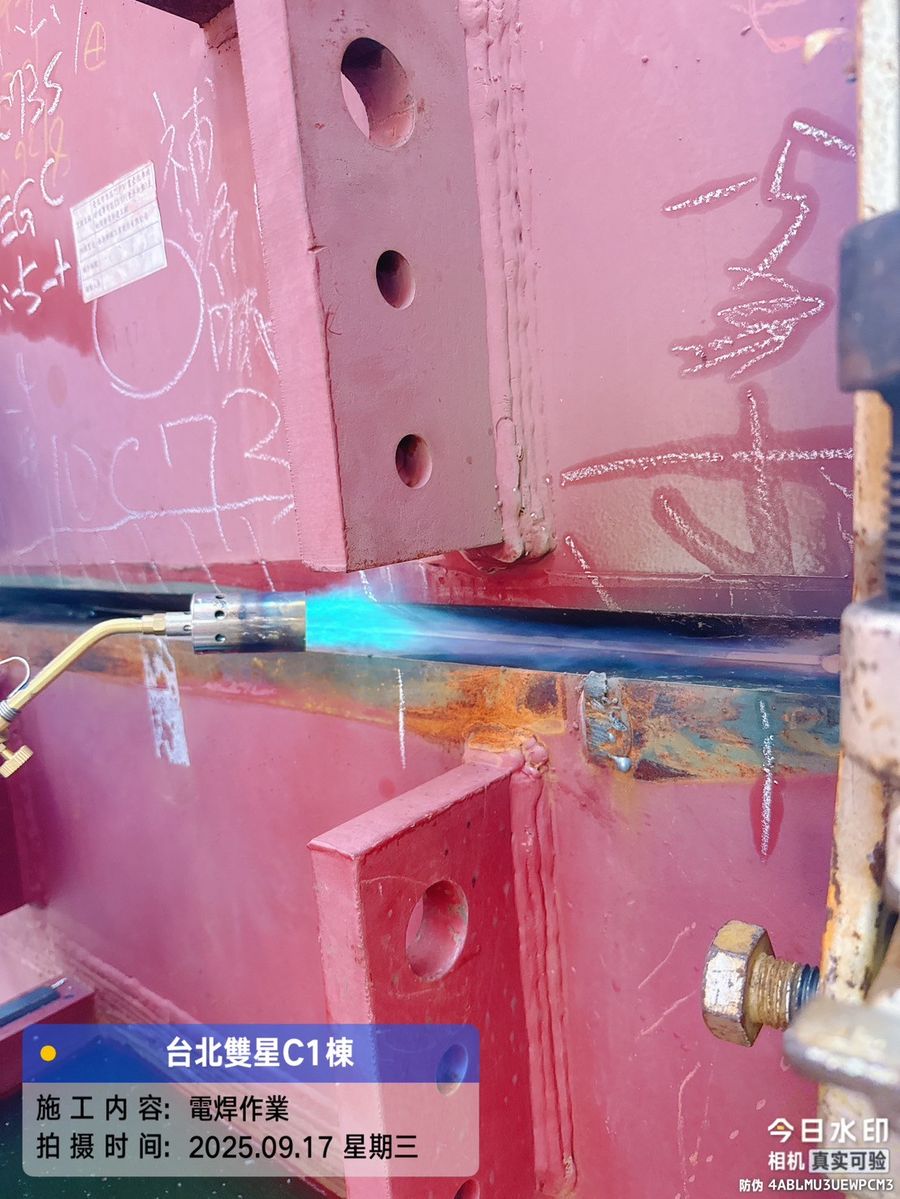 ↓C1棟 #10 鋼柱電焊前加熱