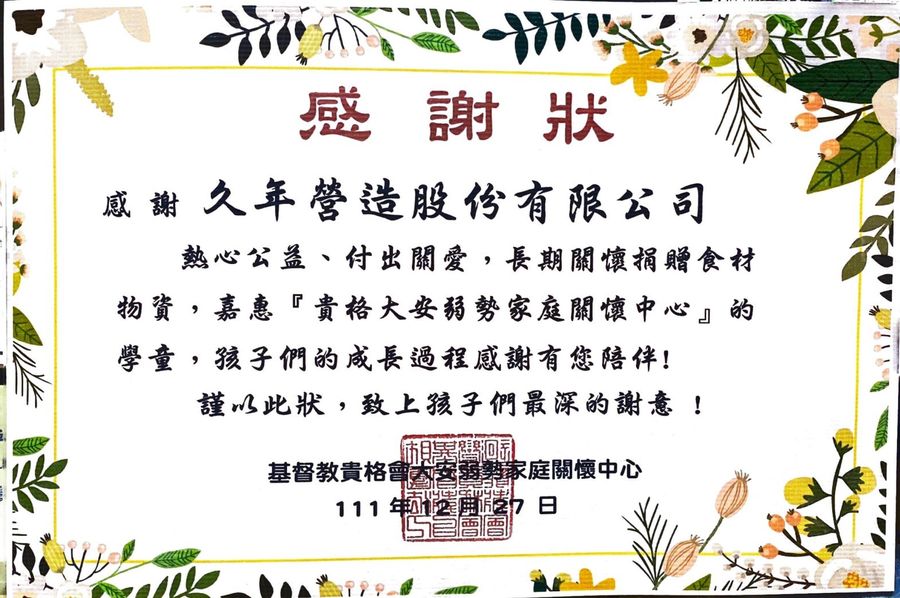 樹林大安區弱勢家庭關懷中心長期食材捐贈